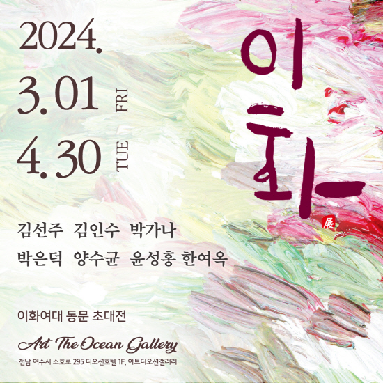 (전남=NSP통신) 서순곤 기자 = 여수 아트디오션 갤러리가 이른 봄 이화여자대학교 동양학과와 서양학과 출신 작가 7인 초대전으로 3월1일부터 4월30일까지 관람객들을 맞이한다.