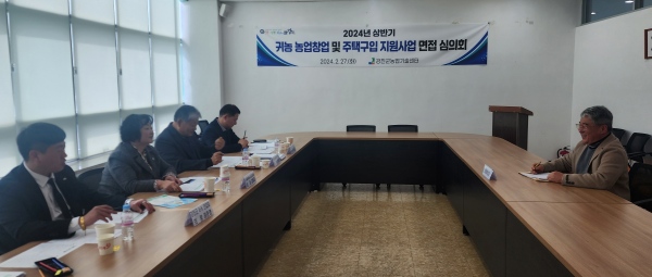 군은 지난달 27일 2024년 상반기 귀농 농업창업 및 주택구입 지원사업 대상자 선정 심의회를 열고 상반기 융자지원 대상자 선정을 위한 면접심사를 가졌다.