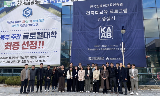 국립순천대학교 건축학부 인증심사는 2023년 4월에 자체평가보고서(APR)를 통한 서류심사와 2023년 11월 19일~22일까지 인증실사 평가로 이루어졌으며, 각 전임교수진의 적극적인 실험실 운영과 학생과의 긴밀한 유대를 통한 다양한 경험 제공 및 교육 내용의 우수성을 최대 강점으로 평가했다.