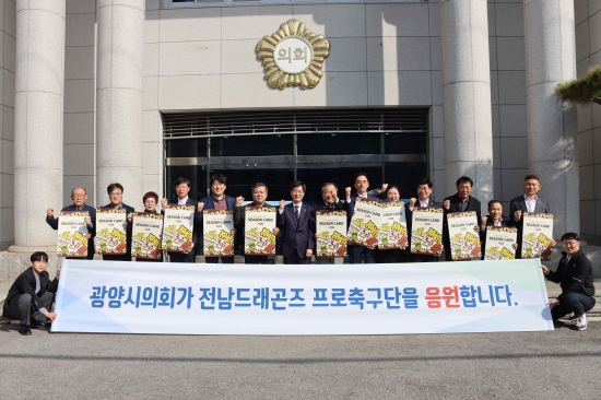 지난 2월 23일 서동용 국회의원을 시작으로 정인화 광양시장, 서영배 광양시의회 의장을 비롯한 지역 단체장들의 2024시즌카드 구매가 이어지는 가운데 광양시의회 의원 13명 전원이 시즌카드를 구매하며 전남드래곤즈 선수단 선전을 기원했다.