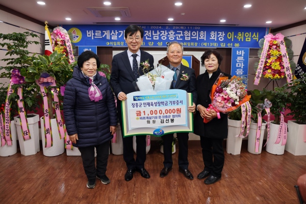 바르살기운동 장흥군협의회 김선봉 회장은 제13대 회장으로 취임하는 자리에서 장흥군의 인재양성을 위해 사용해 달라며 기부에 참여했다.