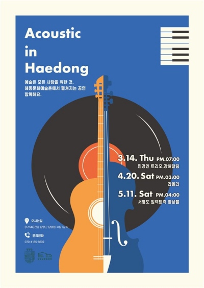 2024년 ‘어쿠스틱 인 해동’의 공연 프로그램은 대중음악, 국악 등 다양한 장르의 공연을 무료입장으로 진행할 예정이다.