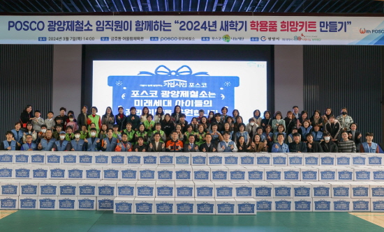 (전남=NSP통신) 김성철 기자 = 광양시는 포스코 광양제철소(소장 이동렬)가 새학기를 맞이해 지난 7일 금호동 어울림 체육관에서 ‘학용품 희망키트 전달식’을 가졌다고 밝혔다.