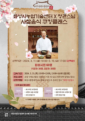 사찰음식 쿠킹클래스 안내문. (이미지 = 화성시)