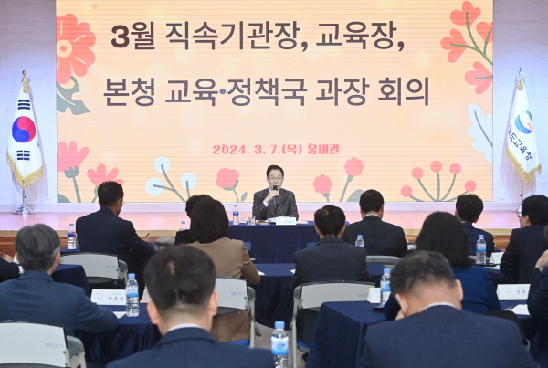 이번 회의는 올해 새로 임명된 기관장과 교육연구관(장학관) 소개, 2024년 주요 업무와 신규 업무 안내, 2024년 주요 교육 현안 관련 전달 연수, 기타 안건 협의 등의 순서로 진행됐다.