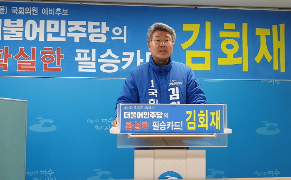 (전남=NSP통신) 서순곤 기자 = 더불어민주당 여수시을 김회재 예비후보(현 국회의원)는 8일 조계원 예비후보의 허위 사실 공표에 대해 공직선거법 위반으로 여수경찰서에 고소했다.