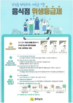 음식점 위생등급제는 영업자가 위생등급평가를 신청하면 한국식품안전관리인증원이 음식점의 위생 상태를 평가하고, 우수한 업소를 3개 등급(매우우수, 우수, 좋음)으로 지정·공개하는 제도로 2017년 5월부터 시행됐다.
