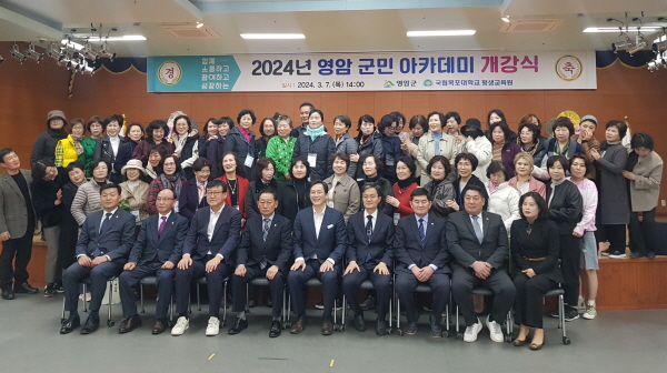 (전남=NSP통신) 강현희 기자 = 영암군(군수 우승희)과 목포대학교 평생교육원이 7일 종합사회복지관에서 수강생 70명이 참석한 가운데 ‘함께 참여하고 소통하며 성장해요’를 주제로 ‘2024년 제2기 영암군민 아카데미 개강식’을 열고, 올 한 해 대장정을 알렸다.