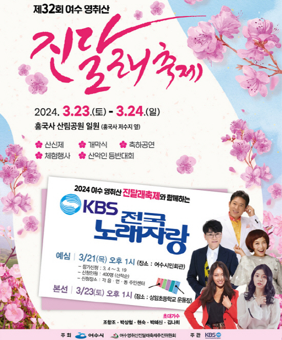 개막식은 오전 11시 흥국사 수변공원 특별무대에서 유명인의 축하공연과 함께 열리며, 시민과 관광객이 장기자랑을 뽐내는 ‘진달래 꽃맵시 선발대회’도 준비된다.