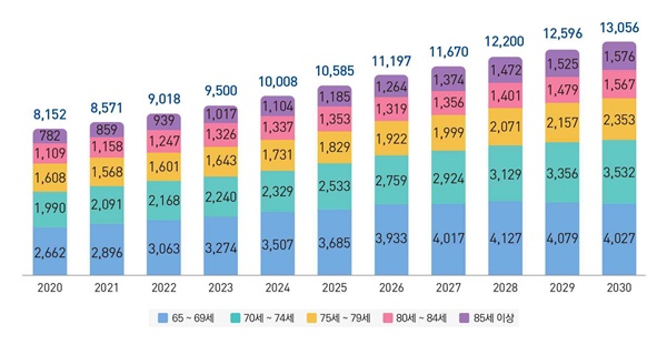전국 노인인구 연령대별 추이(단위 천명) (사진 = 고양시)