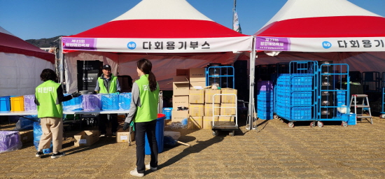 음식 부스에서는 다회용기에 음식을 제공하고 방문객들은 다회용기 부스에서 음식 찌꺼기 및 쓰레기 등을 분리수거한 후 접시, 컵, 밥그릇 등을 종류별로 반납해야 한다.