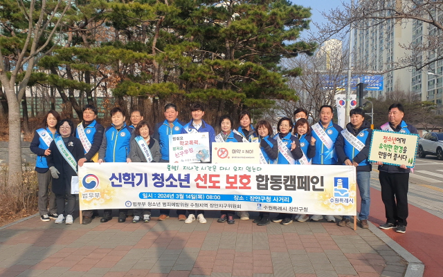 (경기=NSP통신) 김종식 기자 = 법무부 청소년 범죄예방위원 경기 수원지역 장안지구위원회(회장 최성배)가 14일 오전 8시 청소년 선도·보호 합동 캠페인을 실시했다.