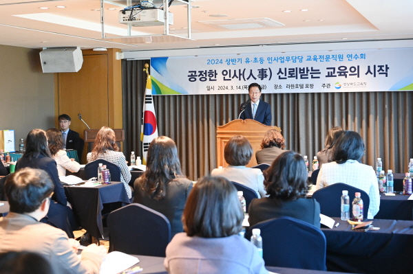 (경북=NSP통신) 조인호 기자 = 경상북도교육청(교육감 임종식)은 14일부터 15일 2일간 포항시에 있는 라한호텔 포항에서 교육지원청과 본청 유·초등 인사업무 담당 교육전문직원 등 60명을 대상으로 역량 강화 연수를 실시했다.