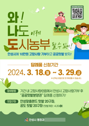 안성시, 고향사랑기부 답례품 ‘공공텃밭 분양권’ 제공