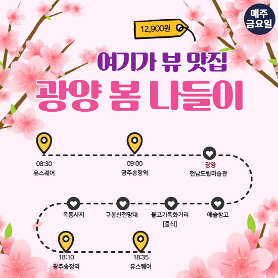 5월 31일까지 매주 금요일 오전 8시 30분, 광주유스퀘어 2번 홈 탑승