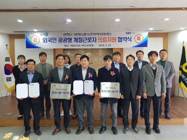봉화군과 봉화농협은 "외국인 공공형계절근로자에 대한 관내 의료지원 협약’을 통해 한층 발전 된 외국인근로자에 대한 의료관리가 기대된다"고 전했다.