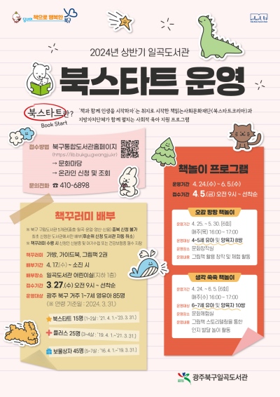 이밖에 북구 5개 구립도서관은 북스타트 책꾸러미 배부에 발맞춰 오는 4월부터 6월까지 아이와 부모를 위한 다양한 ‘북스타트 책놀이 프로그램’도 운영한다.