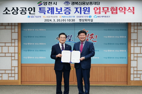 (경북=NSP통신) 김대원 기자 = 영천시는 20일 경북신용보증재단과 관내 금융기관 관계자 등이 참석한 가운데 2024년 영천시 소상공인 특례보증 및 이차보전사업에 관한 업무 협약을 체결했다.