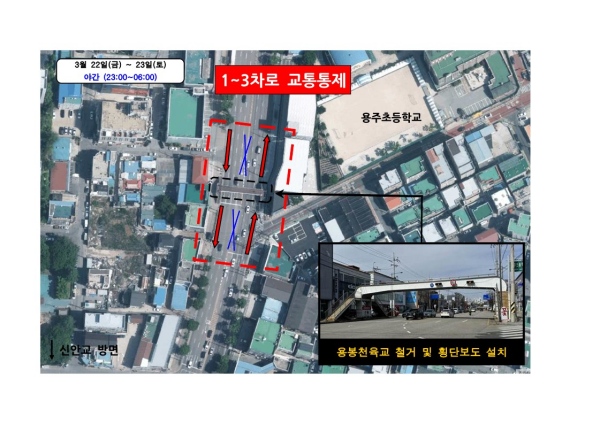 이번 철거공사의 주요 작업은 보행자의 안전 확보와 차량 흐름에 미치는 영향을 최소화하고자 교통 일부 통제 아래 야간에 이뤄지며 철거에 따른 부대공사는 오는 30일까지 모두 마무리될 예정이다.