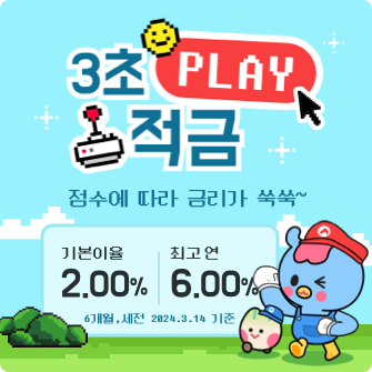 지난 14일에 출시한 ‘3초 플레이적금’은 3초를 정확하게 맞추는 단순한 게임을 적금상품에 접목해 플레이 점수 및 참여횟수에 따라 우대금리를 받는 상품으로, 가입기간은 6개월, 가입금액은 월 1만원 이상 50만원 이하로 가입 가능하며 가입월로부터 5개월간 월 20회씩 총 100회의 게임에 참여할 수 있다.