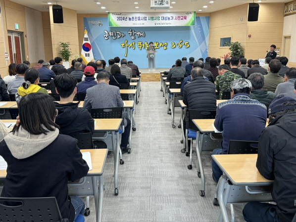 원활한 사업 추진을 위해 지난 21일 농업기술센터 대강당에서 읍면 농민상담소장을 포함한 2024년 농촌진흥 시범사업 대상자 73명을 대상으로 ‘농촌진흥 시범사업 사전교육’을 실시했다.