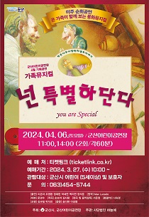 (전북=NSP통신) 김광석 기자 = 전북 군산시 어린이공연장이 봄이 성큼 다가온 것이 피부로 느껴지는 4월 온 가족이 함께 즐길 수 있는 가족뮤지컬 '넌 특별하단다'를 공연한다.