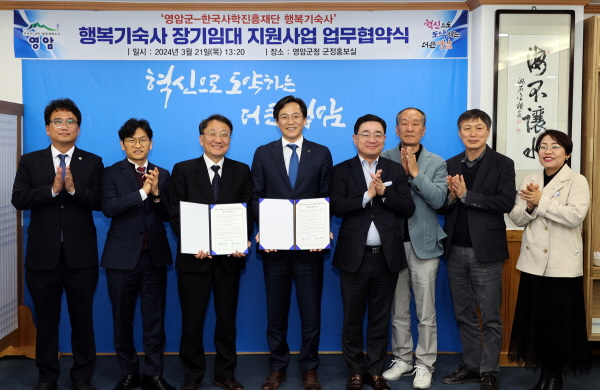 (전남=NSP통신) 강현희 기자 = 영암군(군수 우승희)이 한국사학진흥재단 행복기숙사와 ‘행복기숙사 장기 임대 지원사업 업무협약’을 체결했다.