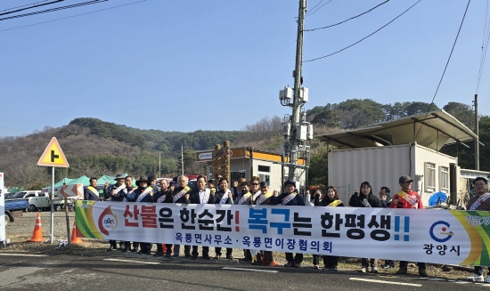 정양순 옥룡면장은 “오늘 행사에 참여해 주신 옥룡면 이장단협의회와 의용소방대에 감사드린다”며 “산불은 무엇보다 예방이 중요하고 단 한 번의 실수로 소중한 산림이 한순간에 사라질 수 있으며 개인의 생명과 재산도 앗아갈 수도 있다”고 강조하면서 면민과 방문객 모두가 산불 예방에 동참할 것을 당부했다.