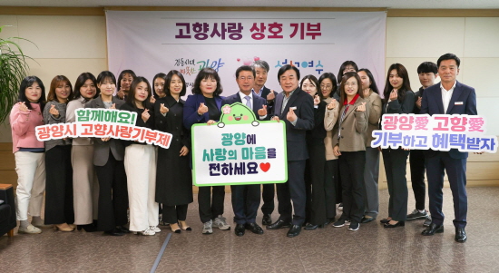 이번 상호기부는 광양시 아동보육과와 여수시 여성가족과 직원 31명이 자발적으로 참여해 총 310만 원의 고향사랑기부금을 교차 기부를 하며 고향사랑기부제의 성공적 정착과 서로의 지역발전을 응원했다.