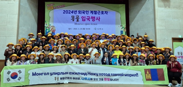 나주시(시장 윤병태)는 최근 농업기술센터 대강당에서 ‘2024년 외국인 계절근로자 입국 환영 행사’를 가졌다.