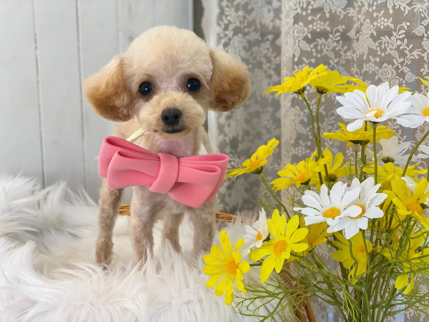 꽃과 함께 뛰놀고 있는 반려견 박보리 모습. (사진 = 조이호 기자)