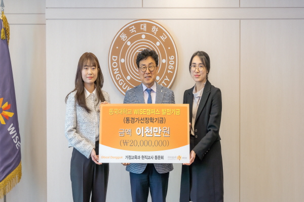 류완하 동국대 WISE캠퍼스 총장은 “후배와 모교의 발전을 위해 소중한 정성을 모아준 가정교육과 동경가선 장학회 모든 분들께 진심으로 고맙고 자랑스럽게 생각한다”며 “모교도 혁신을 통해 글로컬 대학으로 경쟁력을 갖춰 미래를 향해 새롭게 도약하겠다”고 말했다.