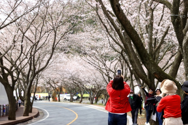 벚꽃길에 도착한 관광객들은 너도나도 휴대폰을 꺼내 벚꽃과 하나가 됐다.