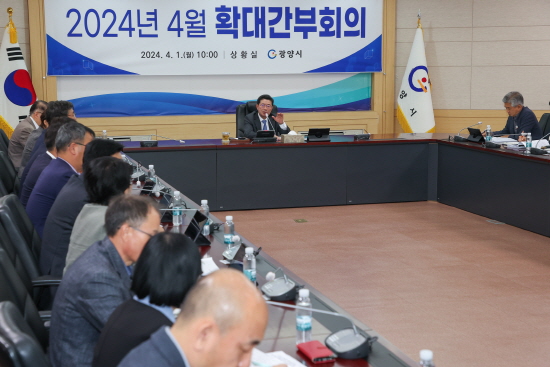 (전남=NSP통신) 김성철 기자 = 광양시는 지난 1일 시청 상황실에서 실·단·과장 이상 간부 공무원이 참석한 가운데 4월 확대간부회의를 열고 부서별 주요 현안업무를 공유하는 시간을 가졌다.