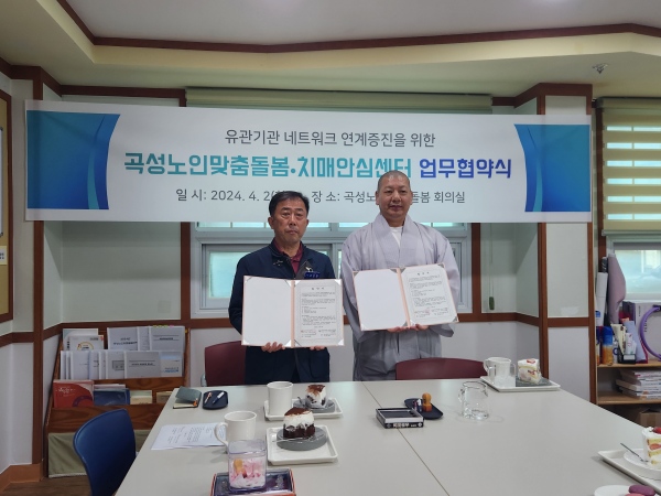 (전남=NSP통신) 김용재 기자 = 곡성군이 지난 2일 치매 고위험군 노인 맞춤돌봄 이용자의 치매 조기발굴과 서비스 연계를 위한 상호 협력체계를 구축하기 위해 보문복지회 곡성노인맞춤돌봄 기관과 업무 협약을 체결했다.