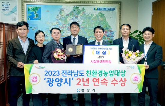 (전남=NSP통신) 김성철 기자 = 광양시가 지난 2일 전남도청에서 열린 ‘친환경농업대상’ 시상식에서 ‘대상’을 차지했다.