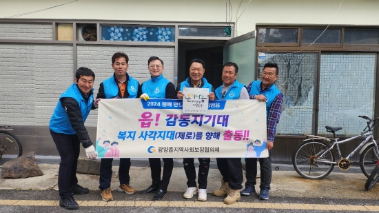 광양읍 읍!감동지기대는 지난해 12월 제10기 지역사회보장협의체 발족과 함께 새롭게 구성된 기동대이며, 봉사단체나 공적 지원으로 추진하기 어려운 상황을 해소하기 위해 이뤄졌다. 각 분야 전문가 6인으로 구성돼 다양한 봉사활동을 통해 선한 영향력으로 지역사회에 본보기가 되고 있다.