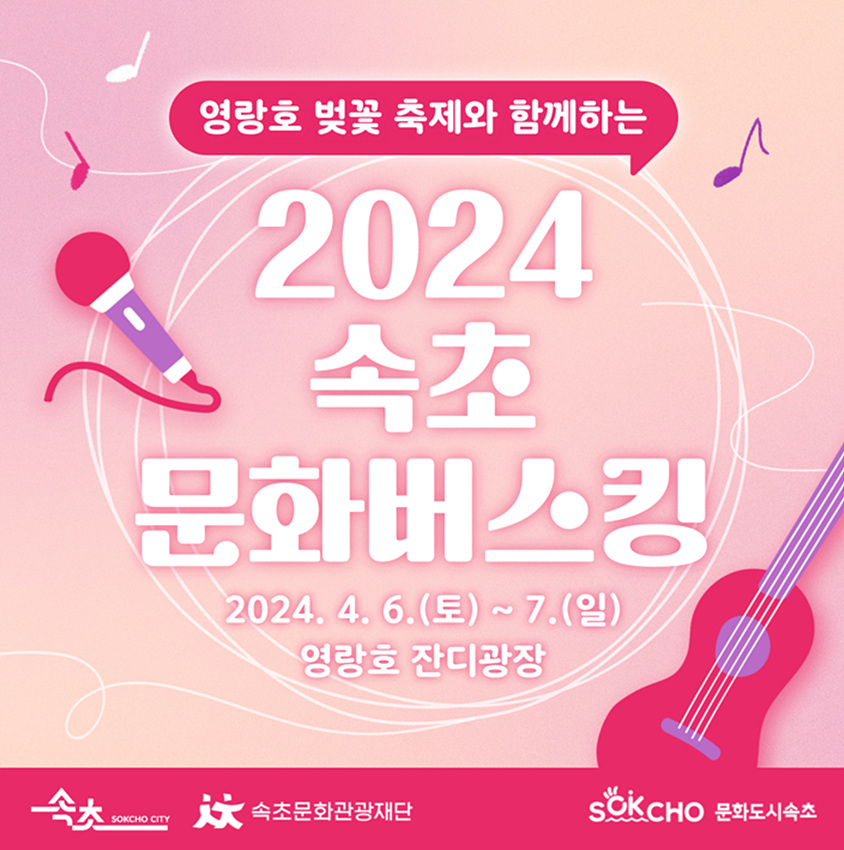 (강원=NSP통신) 조이호 기자 = 강원 속초문화관광재단(이사장 이병선 속초시장)이 6일부터 7일까지 영랑호 잔디광장에서 영랑호 벚꽃축제와 함께하는 ‘2024 속초문화버스킹’을 개최한다.