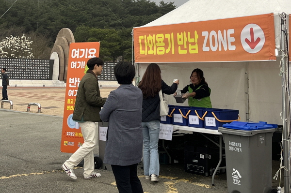다회용기를 사용한 축제 방문객들은 반납부스에 이를 되돌려줬고, 영암군은 매일 수거된 4만여 개를 고온·고압 세척과 건조, 살균 작업을 거쳐 다시 축제장에 내놓았다.