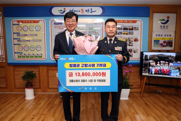 김성 군수는 “국민의 재산과 생명을 지키는 소방공무원들의 뜻깊은 기부에 감사하다. 소중한 기부금은 보다 안전하고 행복한 장흥을 만드는 데 사용하겠다”고 밝혔다.
