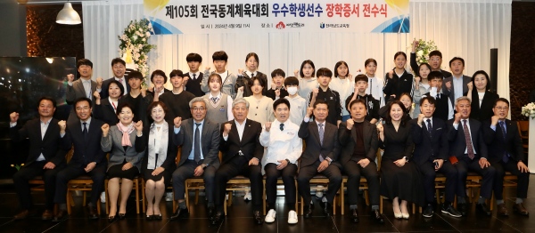 이 날 전수식에서는 이번 전국동계체육대회에서 입상한 우수학생 18명에게 장학증서를 수여했다.