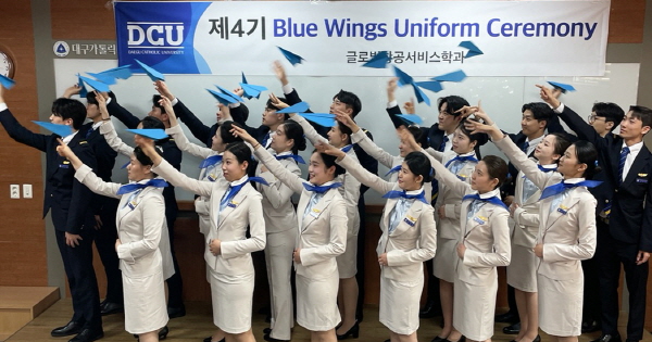 대구가톨릭대 글로벌항공서비스학과는 지난 2일 제4기 윙수여식(Blue Wings Uniform Ceremony)을 개최했다. (사진 = 대구가톨릭대학교)