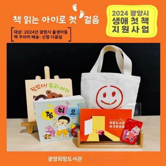 (전남=NSP통신) 김성철 기자 = 광양시가 2024년 1월 1일부터 태어난 모든 아기에게 그림책과 도서관 회원증을 선물하는 ‘생애 첫 책 지원사업’을 4월 16일 ‘엄마, 아빠 책 읽어주세요!’ 행사와 함께 시작한다.