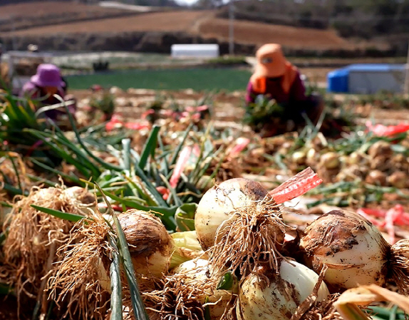 고흥군은 지금 해풍 맞고 자란 조생종 햇양파 수확이 한창 (사진 = 고흥군)
