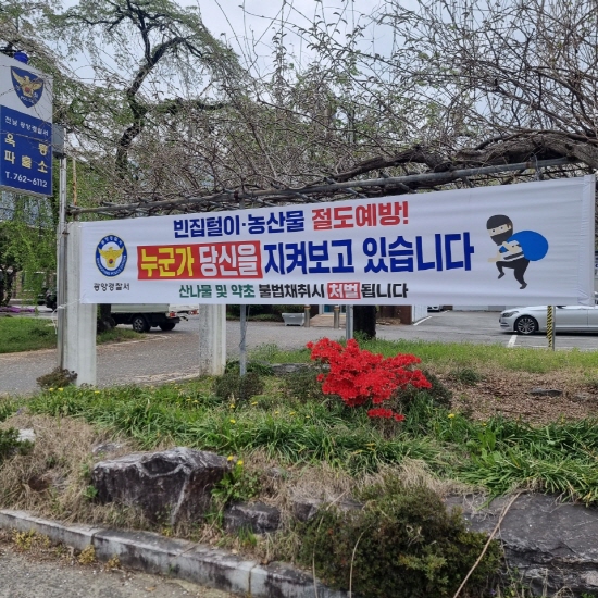 이는 ‘야산에 심어 놓은 두릅, 고사리 등 산나물을 마구잡이로 채취해 간다’는 주민들의 하소연을 듣고 이는 절도 행위임을 알릴 필요성과 농작물채취 또는 주말 나들이 등으로 집을 비운 사이 언제든지 침입절도 등 주변에서 범죄는 발생할 수 있다는 경각심을 주기 위해 최근 3년간의 동기간 광양시에서 발생한 범죄분석을 통해 지역적 특성에 맞는 범죄예방 활동을 추진할 계획이다.