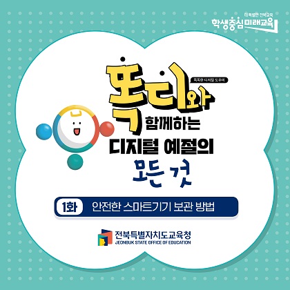 16일 전북교육청에 따르면 학생 교육용 스마트기기 보급 사업의 일환으로 디지털 교육환경의 올바른 정착을 지원하기 위해 ‘똑디와 함께하는 디지털 예절의 모든 것’ 웹툰 자료를 개발, 누리집에 연재한다.