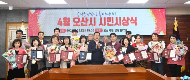 (경기=NSP통신) 조현철 기자 = 경기 오산시(시장 이권재)가 15일 2024년 4월 시민시상식을 오산시청 상황실에서 개최했다.