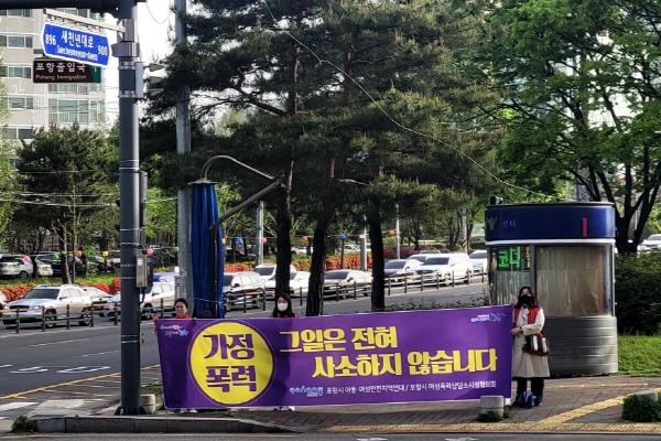 (경북=NSP통신) 조인호 기자 = 포항시 여성폭력상담소 시설협의회(회장 김경미)는 17일 대잠사거리, 형산로터리, 우현사거리 등 3곳에서 ‘여성 폭력 추방 연합 캠페인’ 을 실시했다.