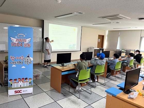 NSP통신-SGC에너지가 18일 새만금초등학교 4~6학년 46명을 대상으로 사랑의 1004운동 찾아가는 에너지 학교 교육을 실시하고 있다. (사진 = SGC에너지)