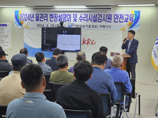 (전남=NSP통신) 김성철 기자 = 한국농어촌공사 전남지역본부(본부장 조영호) 구례지사(지사장 임성재)는 지난 18일 구례군의원, 운영대의원, 수리시설감시원, 농업인 등 110여 명이 참석한 가운데 ‘2024년 물관리 현장설명회’를 개최했다.